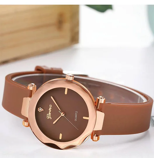 Elegant Diamond Case Round Sweet Girls Silica Quartz Wristwatch